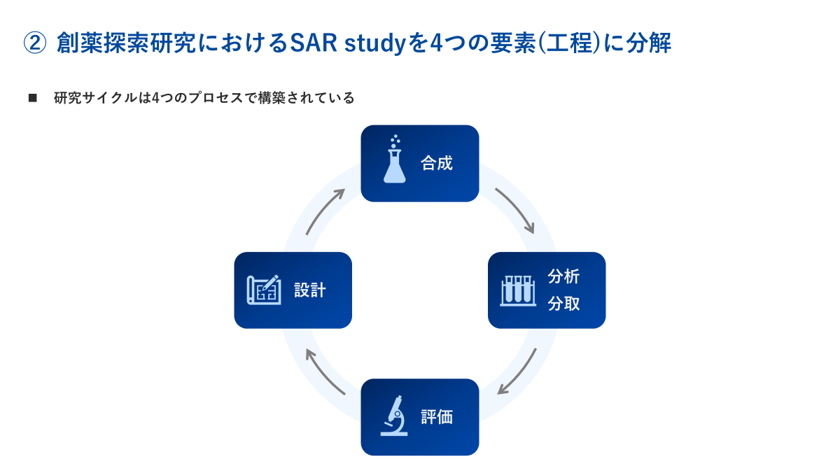 創薬探索研究の「競争力」は、構造活性相関研究(SAR study)サイクルの「早さ」であると言い換えることも可能です。