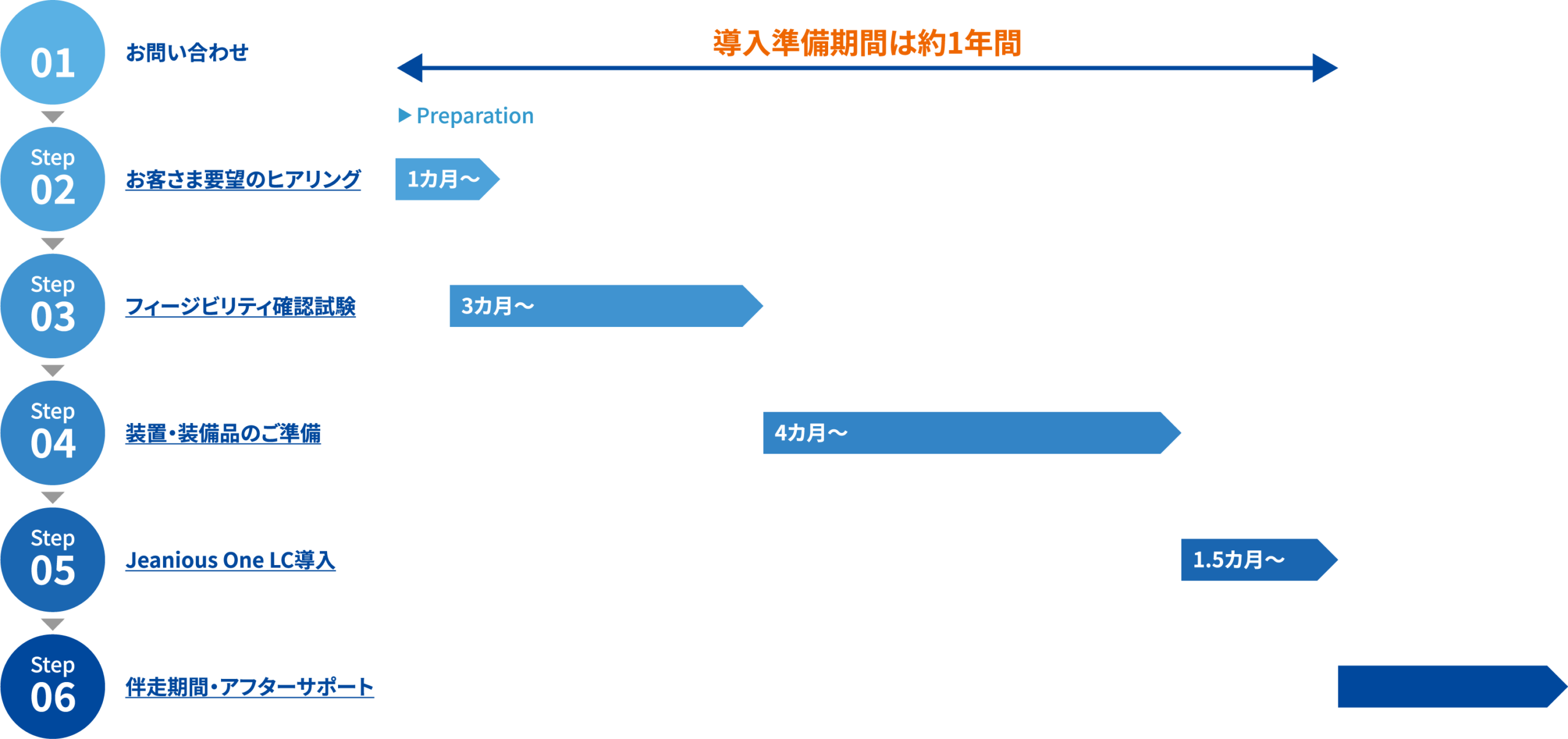 Jeanious One LCでは次の3つのサービスによって、導入初日からの精製成功を実現しています。ご要望に応じて、コンサルテーションとの組み合わせ、段階的な進め方も可能です。